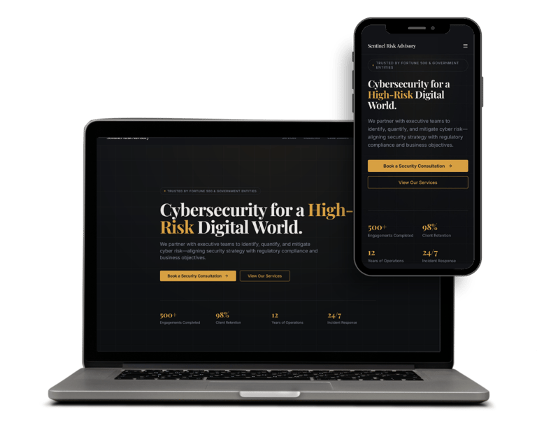 Sentinel Risk Advisory, a high-end cybersecurity firm, needed a digital presence that reflected the seriousness and authority of their services.